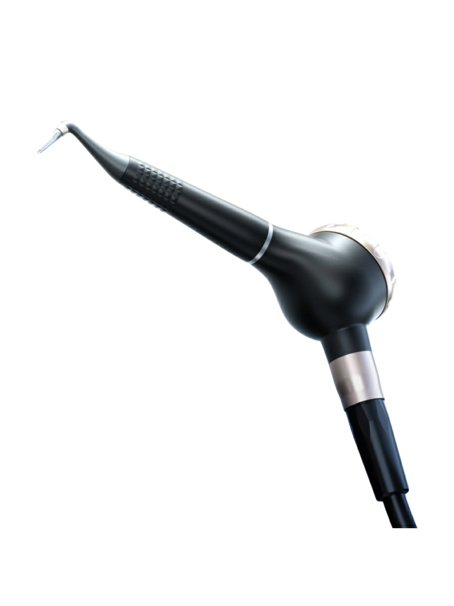 Практичность и комфорт врача — в приоритете. Облегченная конструкция снижает утомляемость запястья при длительном приеме. Масса устройства составляет всего 125 г, что значительно меньше показателей большинства конкурентных аналогов на рынке. Боковой прозрачный резервуар позволяет визуально контролировать остаток порошка в реальном времени.