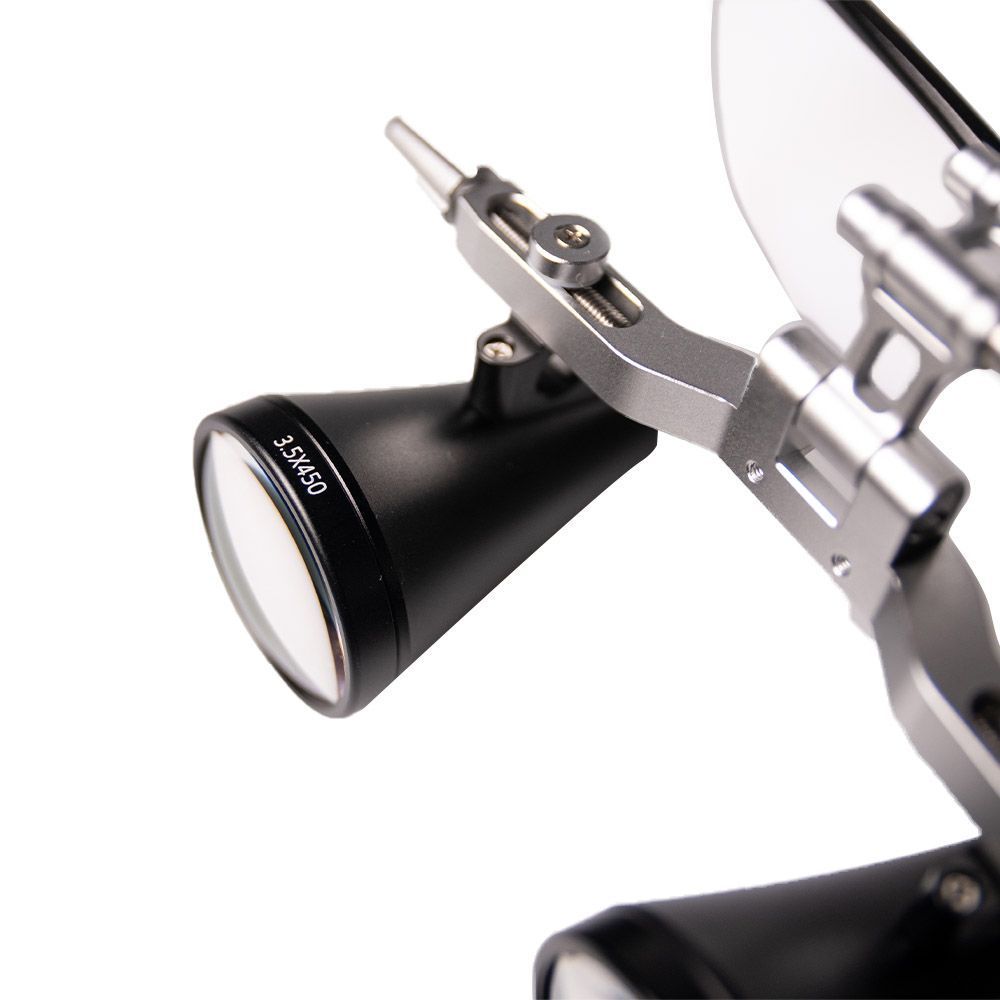 Бинокулярные лупы Dialog предлагают выбор увеличения x3 (рабочее расстояние 400 мм) или x3,5 (рабочее расстояние 450 мм), что позволяет адаптироваться под разные задачи и предпочтения пользователя.Благодаря регулируемому межзрачковому расстоянию и креплению на трёх шарнирах, лупы легко подстраиваются под индивидуальные особенности каждого пользователя, гарантируя максимальную чёткость и стабильность изображения.