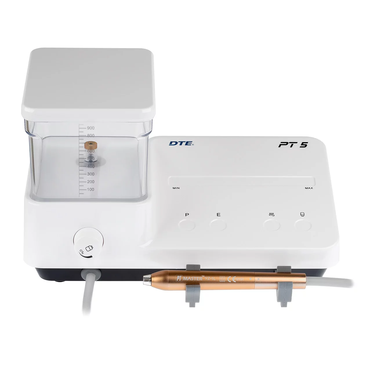 Новейший ультразвуковой скейлер PT Master 5 с технологией рассеивания вибраций, 12 уровнями настройки мощности, 2 резервуарами для жидкости и ультра-чувствительной сенсорной панелью. 15 насадок в комплекте (E51х2, P50Rх1, P50Lх1, P52х2, P53Rх2, P53Lх2, P56х2, P59х2, P90 х1)