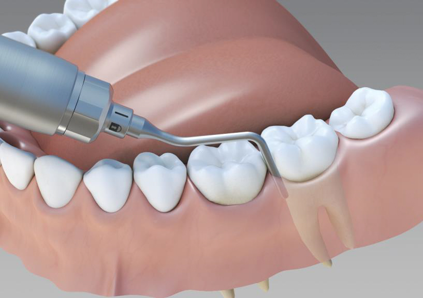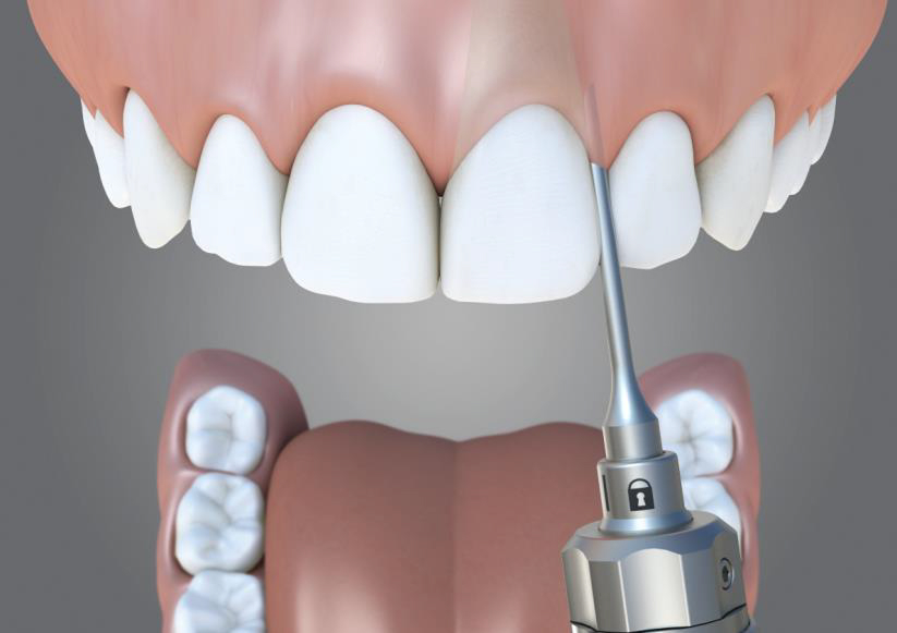 - Совершая осторожные, чередующиеся вращательные движения наконечником, плавно перемещайте лезвие периотома вокруг десмодонтальной связки.