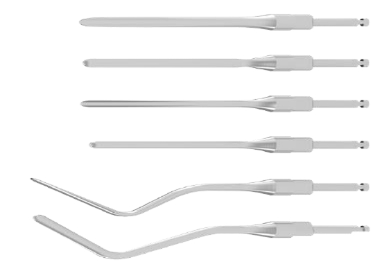 Высокоточный откалиброванный инструмент, преобразующий вращение в продольные механические микроудары. Количество ударов строго регулируется скоростью микромотора (до 15 000 об/мин). Высокий крутящий момент и передаточное соотношение 1:1 обеспечивают феноменальную мощность воздействия при полном отсутствии физической нагрузки на кисть хирурга.
