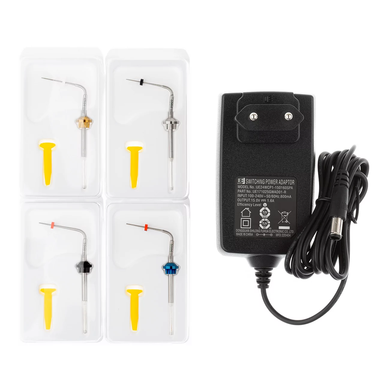 В комплекте с аппаратом поставляется набор из 4-х долговечных насадок (WP4004, WP4504, WP5506, WP5508) различной конусности и диаметра.