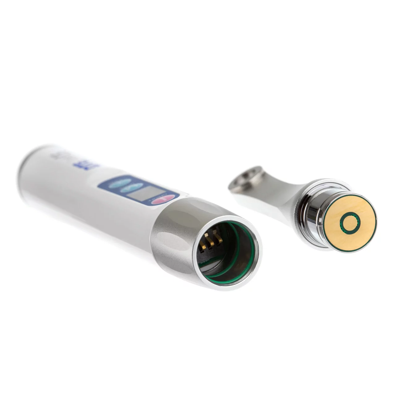 Корпус световода выполнен из противоударного металла (алюминия). В отличие от хрупких стеклянных световодов, он не разобьется при случайном падении. Гладкий эргономичный дизайн ручки легко очищается и дезинфицируется.